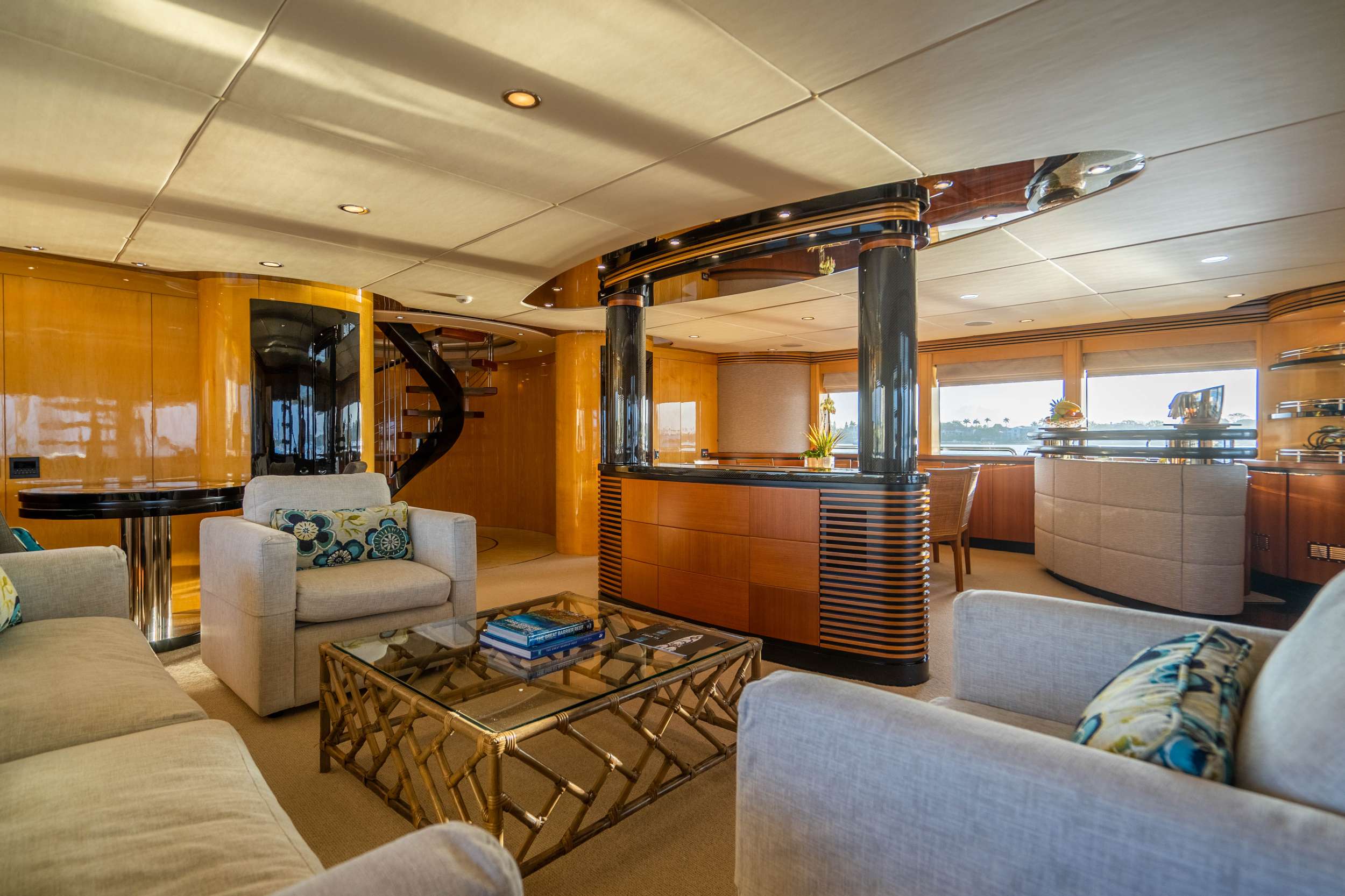 Accommodations are expansive with five staterooms for up to ten guests including 1 King, 4 Queen (Two Queens can covert to twins), all with home theater systems linked to a central server and en-suite baths.