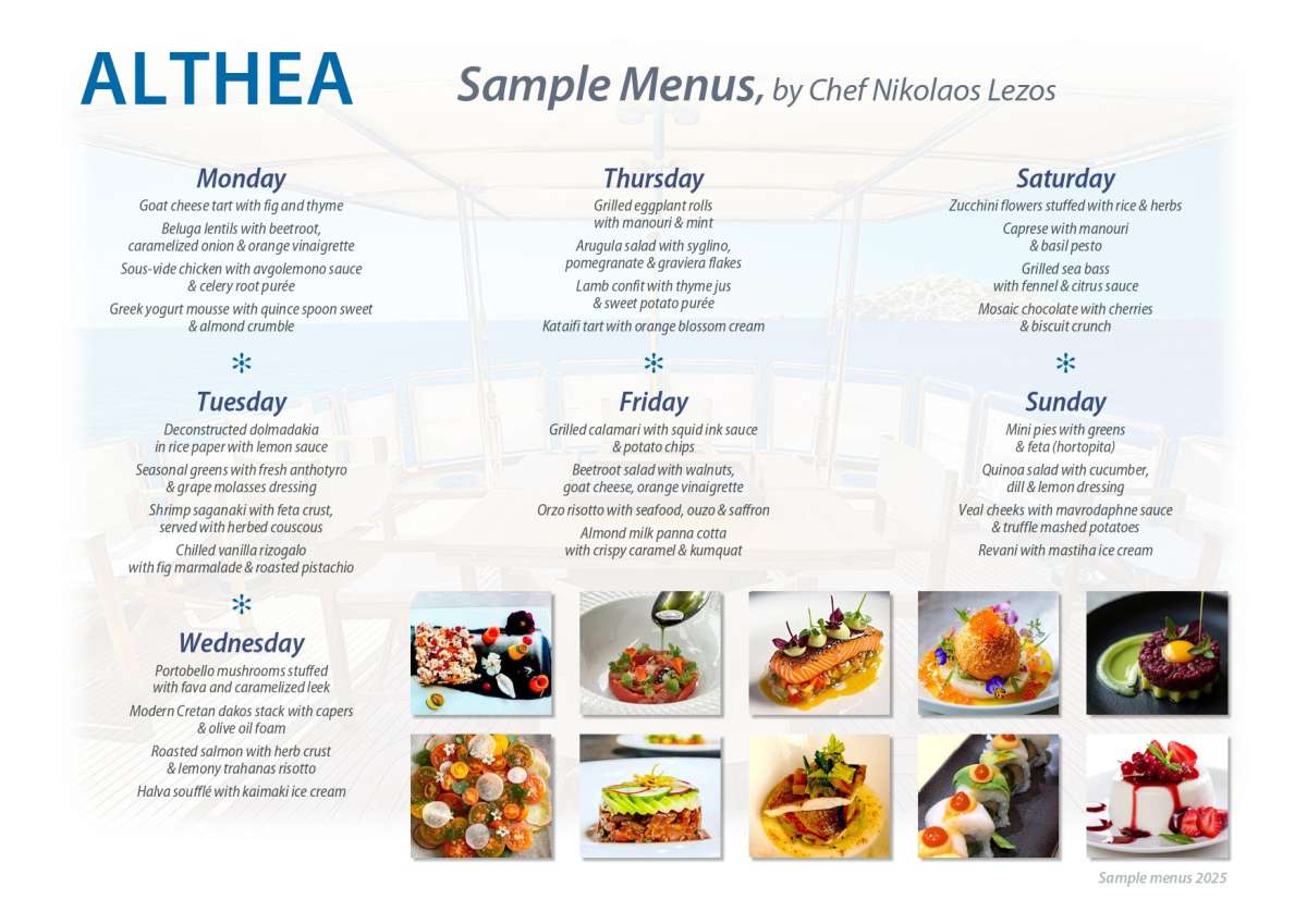 Nikolaos is responsible for the planning and execution of all meals on board, tailored to guest preferences and dietary needs. He manages provisioning, ensures strict hygiene standards, and presents meals with creativity and elegance. He coordinates closely with the stewardess and captain to deliver a seamless dining experience, both for daily service and special occasions.