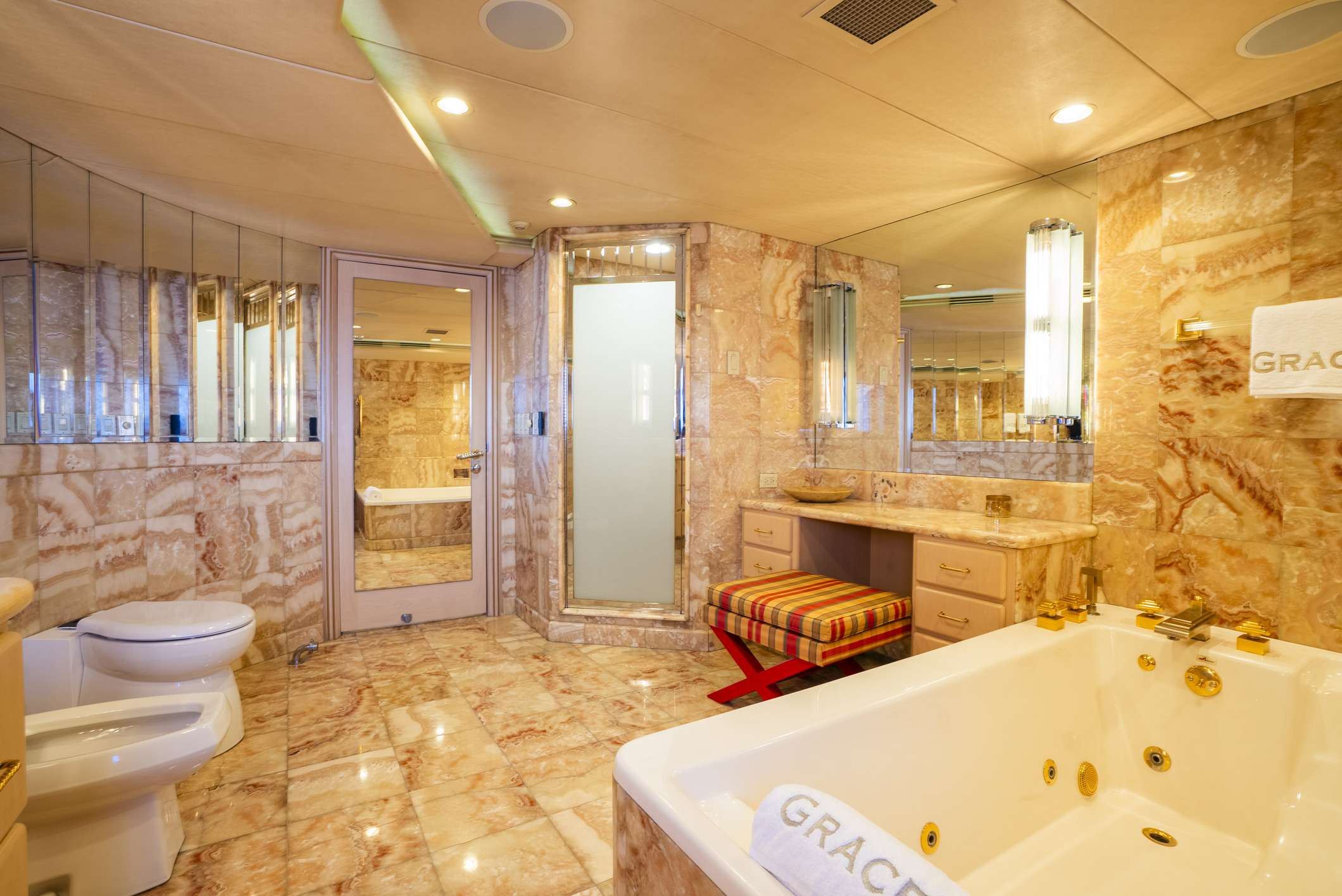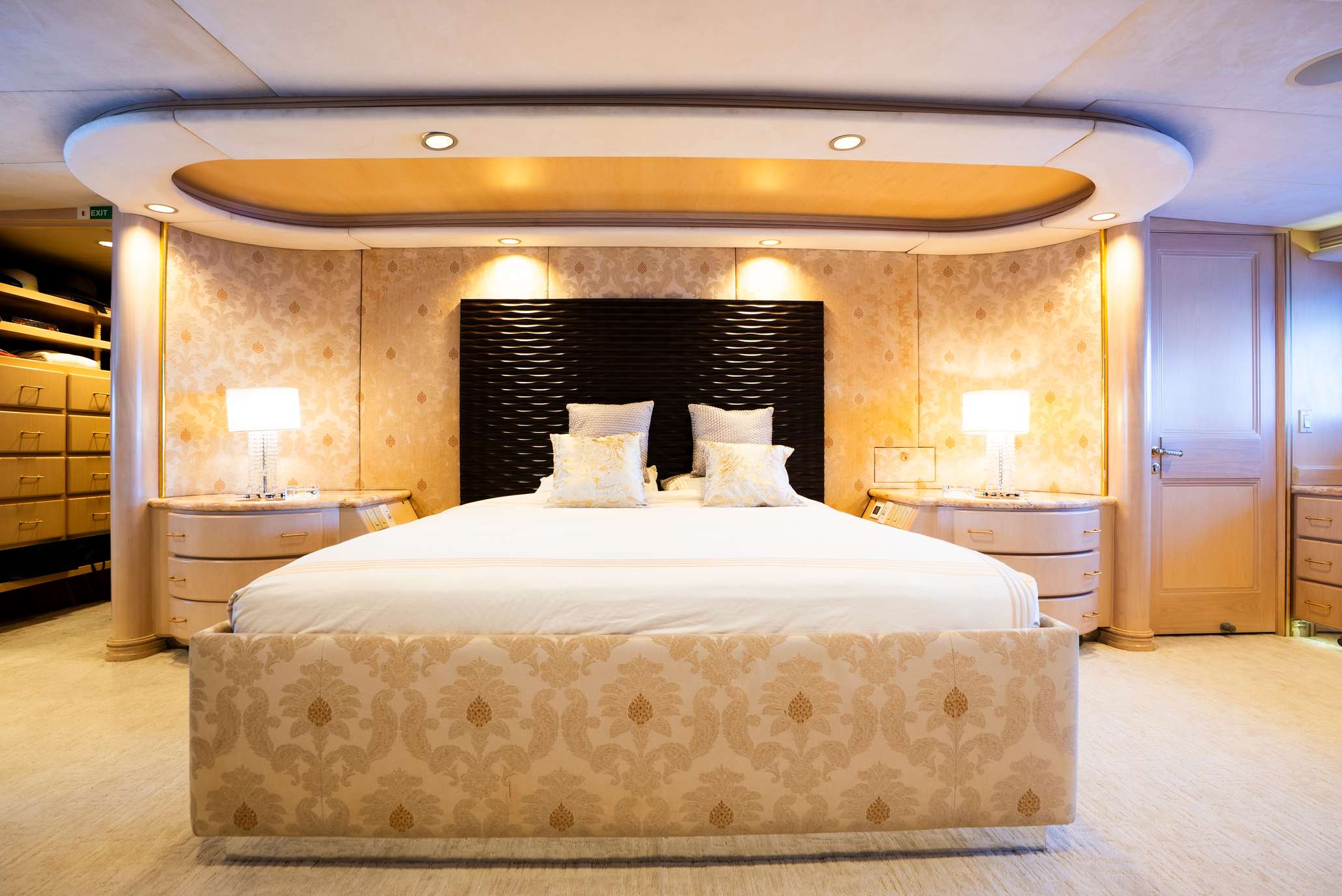 Master cabin is full beam on main deck with an external office that can be used as an additional cabin for nanny or security.