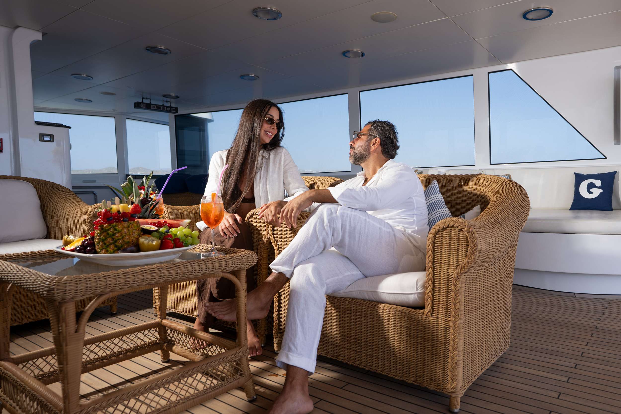 16 Guests can sit comfortably around the Main Deck Dining Table