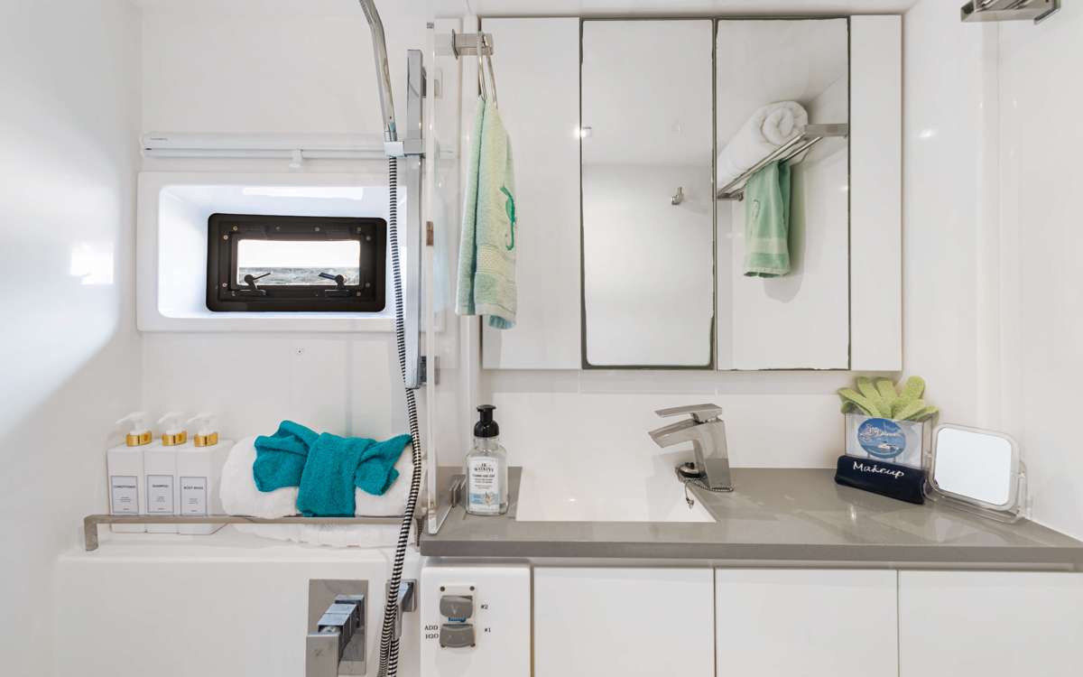 Accommodating up to six guests, this yacht features two Queen staterooms and one Double, each thoughtfully designed with comfort and convenience in mind. Every cabin is equipped with overhead reading lights, USB ports, and a private ensuite bathroom complete with an electric toilet, vanity sink, and shower. Guests can indulge in the provided luxurious, all-natural body and bath products, ensuring a relaxing and rejuvenating onboard experience.