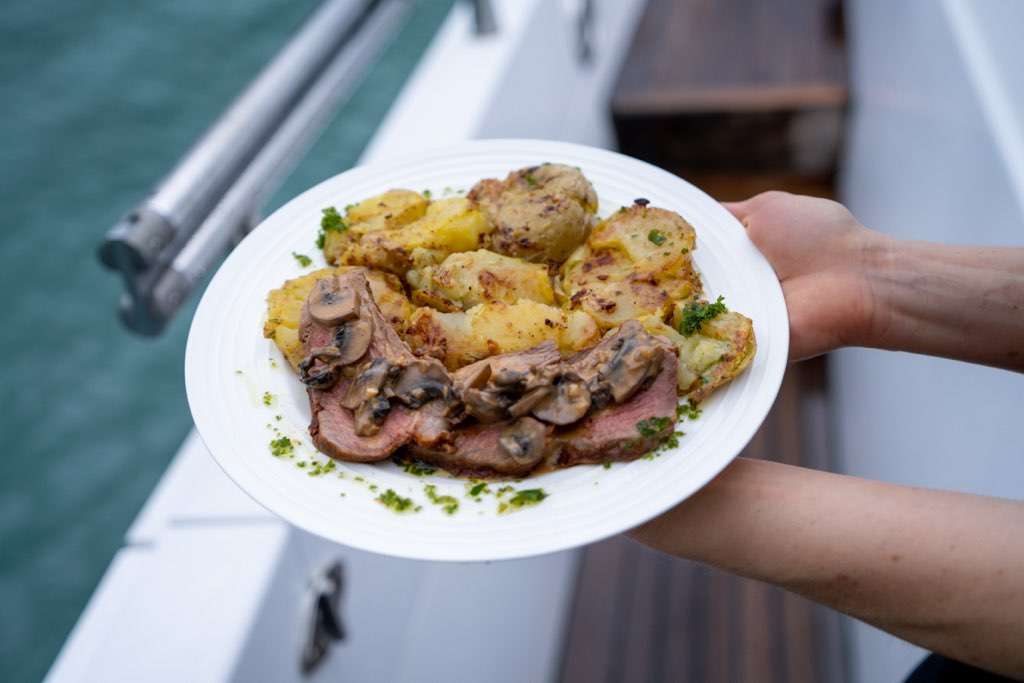 In Tracy’s kitchen, the sweet and the savory receive equal devotion. Every day features a fresh, homemade bread and a thoughtfully crafted dessert to complement the meal. One of the great joys of cooking in Alaska is the unparalleled access to fresh, local seafood, and Tracy delights in bringing these gifts of the region to the table. When the season allows, foraged berries find their way into pastries and jams, and cured salmon appears on the appetizer spread.
