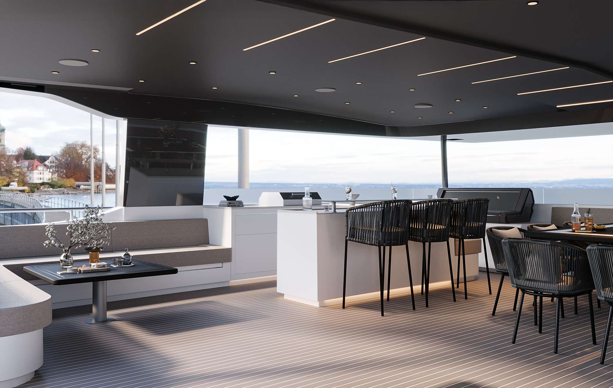 2 separate crew cabins with private deck access.