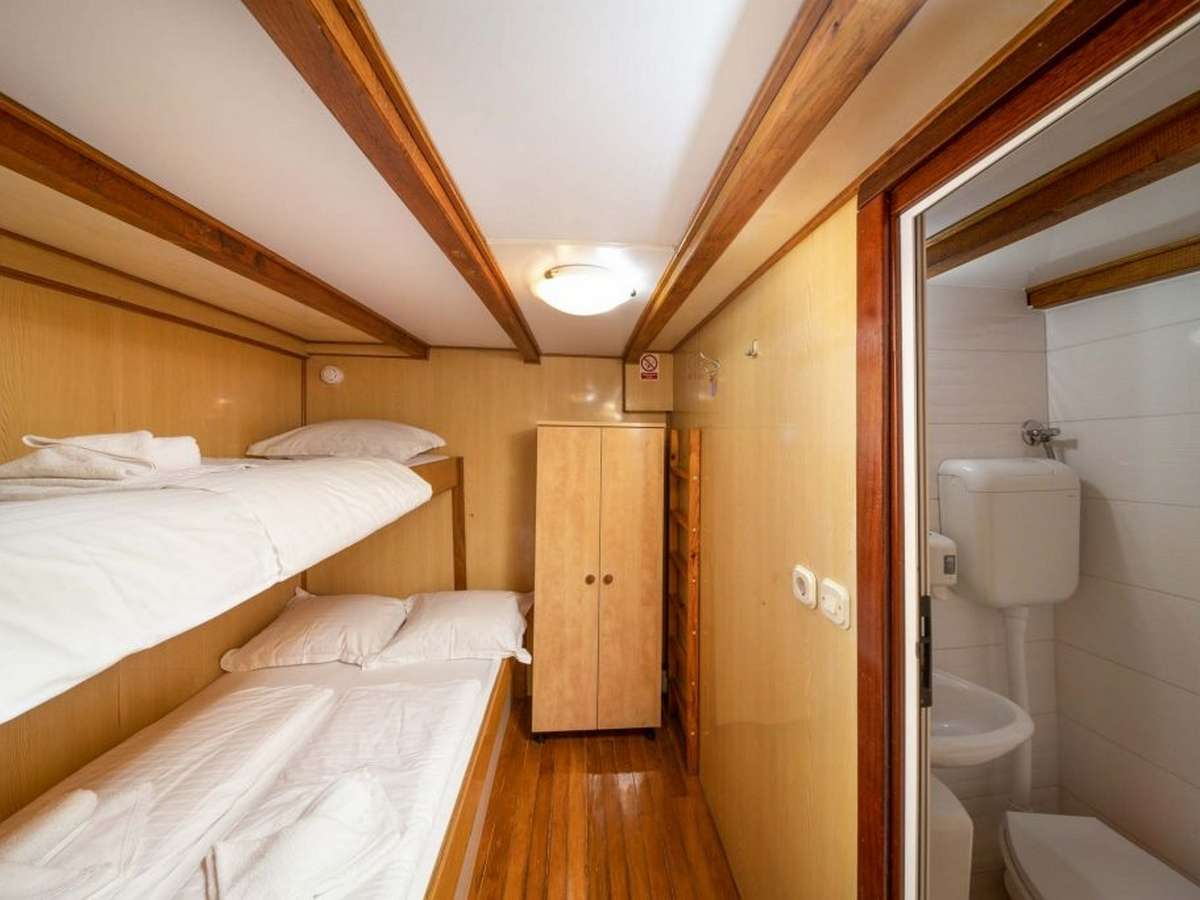 9 en-suite double cabins with bed (140*190 cm) plus additional bunk bed (80*190)