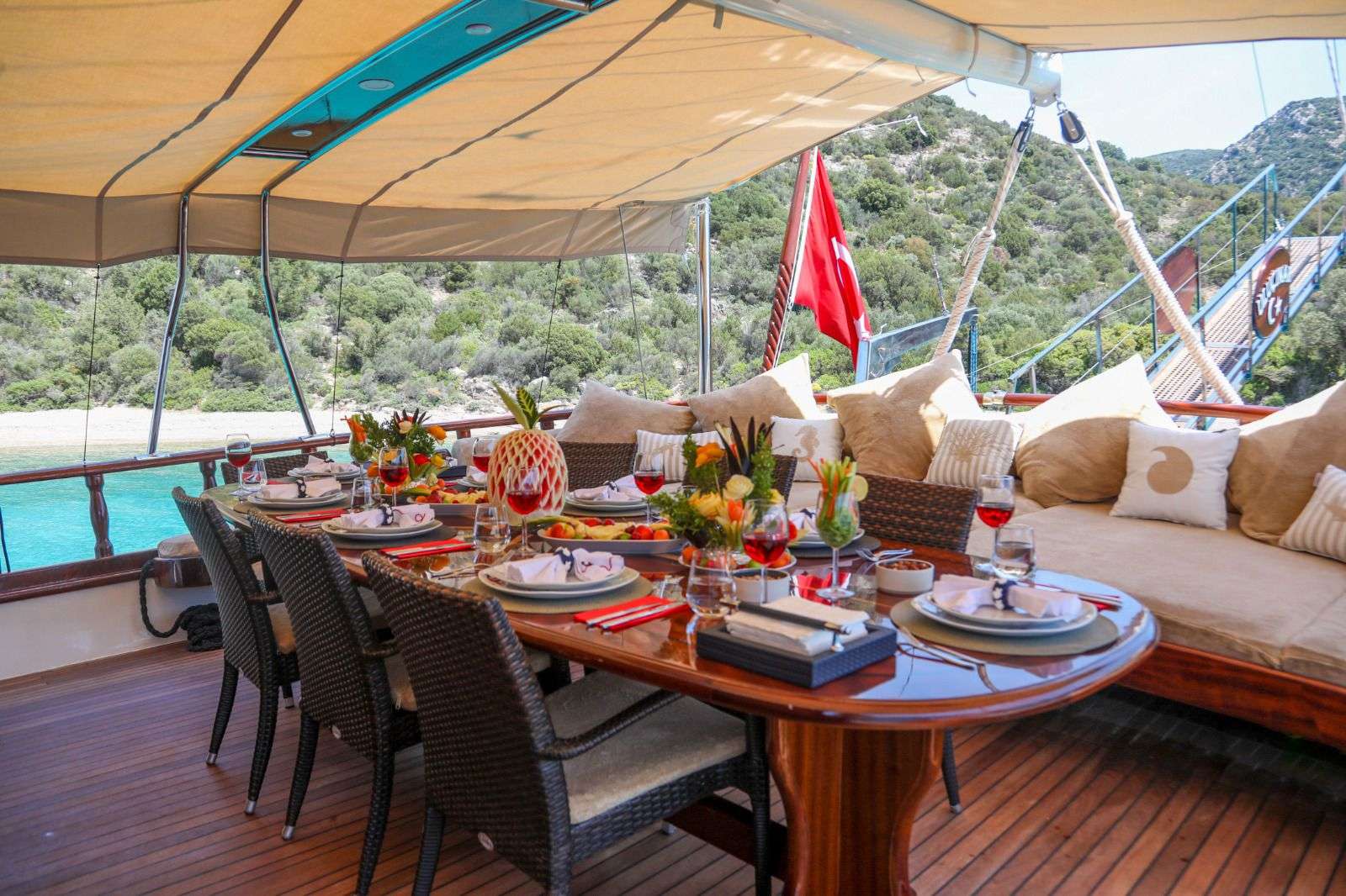AMENITIES: Satellite TV in saloon, espresso & Turkish coffee machine, filter coffee machine, washing machine,front and rear seating group speaker system, Wi-Fi, playing cards, backgammon.