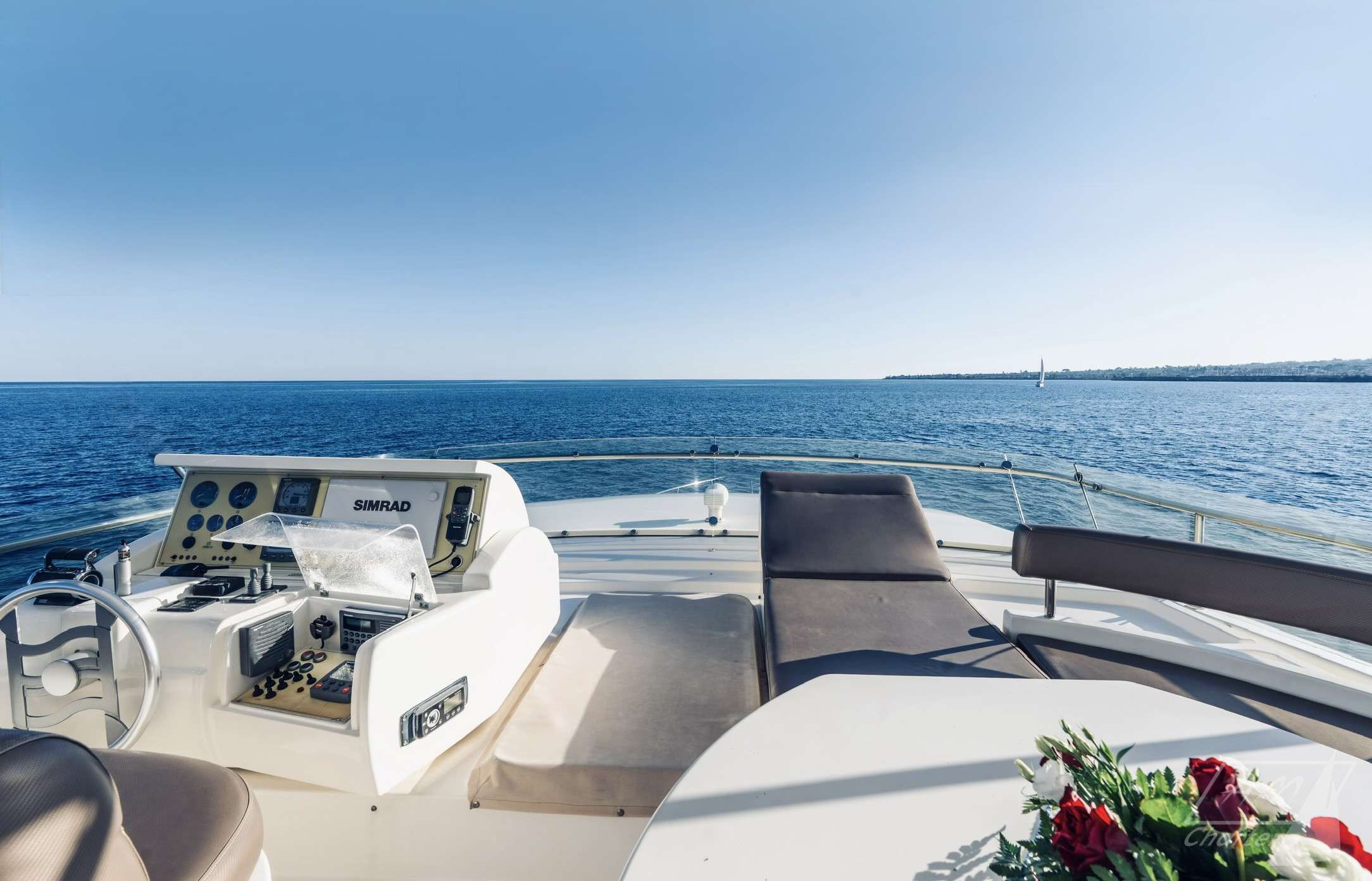 On deck, the exterior layout features: the aft deck with an alfresco dining area — perfect for meals or aperitifs; the foredeck offers a generous sunbathing zone, ideal for lounging and soaking up the sun. The flybridge adds another level of outdoor living: it includes a second dining space, large sun‑pads to relax, an external helm station, and a well‑equipped wet‑bar with barbecue — a setting tailor‑made for sunset cocktails, joyful gatherings, or dining under the stars.